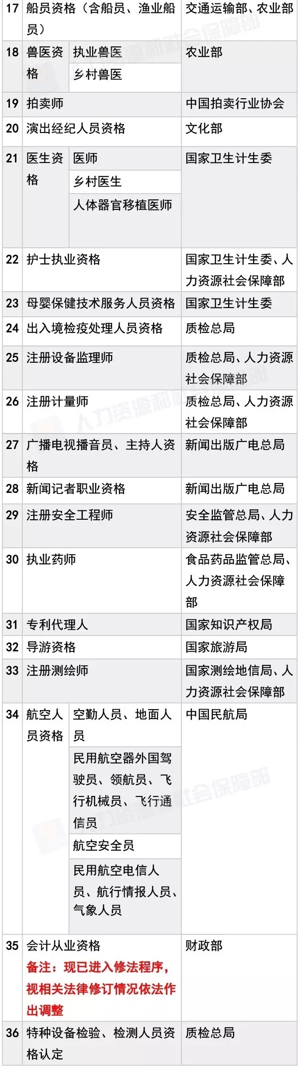 经国务院同意,人力资源社会保障部印发《关于公布国家职业资格目录的通知》(人社部发〔2017〕68号),公布国家职业资格目录。