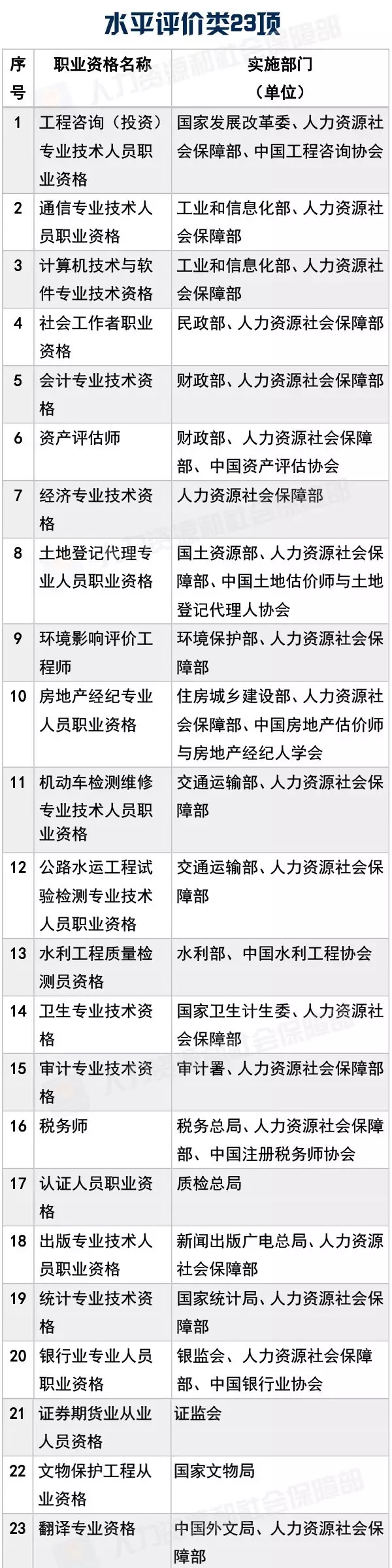 这些职业资格基本涵盖了经济、教育、卫生、司法、环保、建设、交通等国家重要的行业领域,符合国家职业资格设置的条件和要求。 准入类职业资格关系公共利益或涉及国家安全、公共安全、人身健康、生命财产安全,均有法律法规或国务院决定作为依据;水平评价类职业资格具有较强的专业性和社会通用性,技术技能要求较高,行业管理和人才队伍建设确实需要。